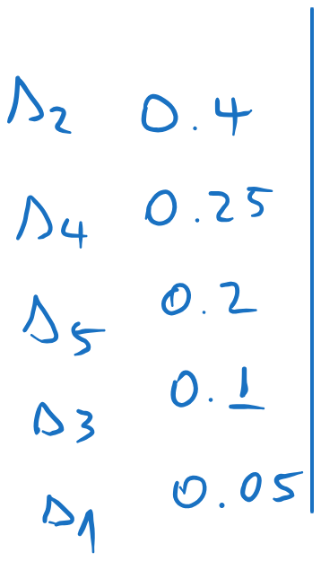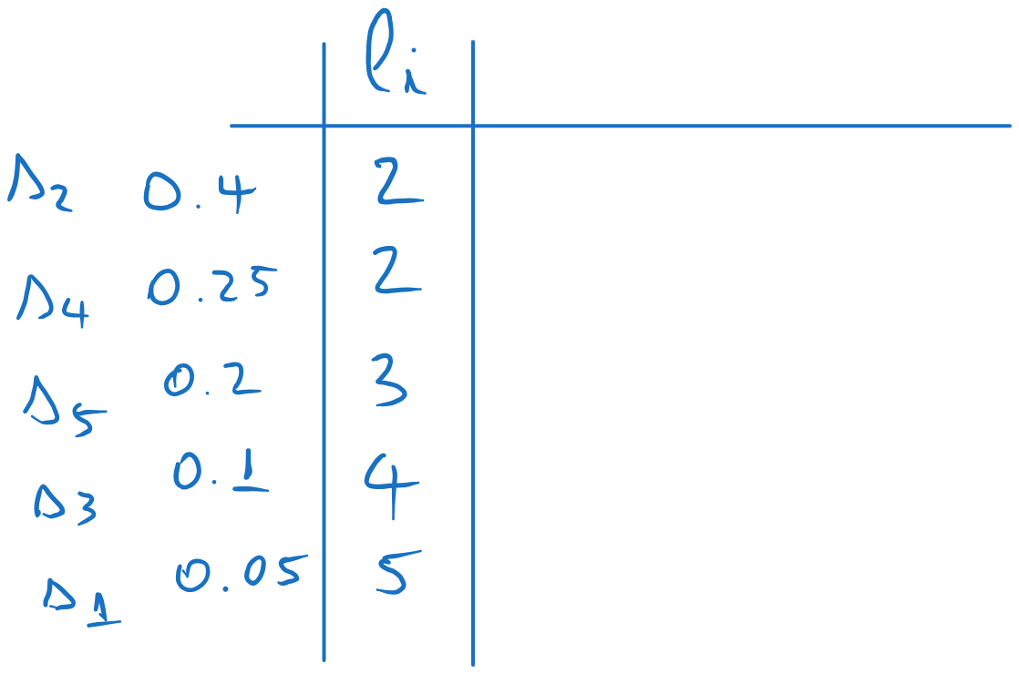 We need first to compute the average numbers of 0’s and average number of 1’s in the codewords, and . We compute them just like the average length, but we consider only the number of 0’s and 1’s in the codewords, not the full codeword lenghts.