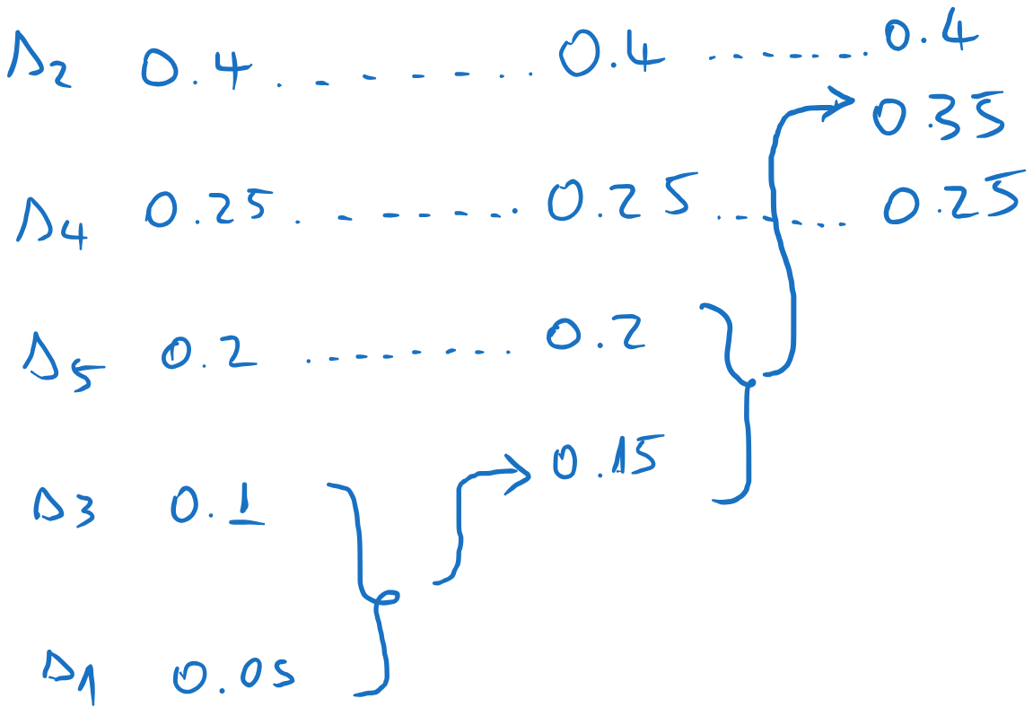 Note that we also had another option to choose for the 0.5 value, but this one has little impact on the final result, because it is close to the end.